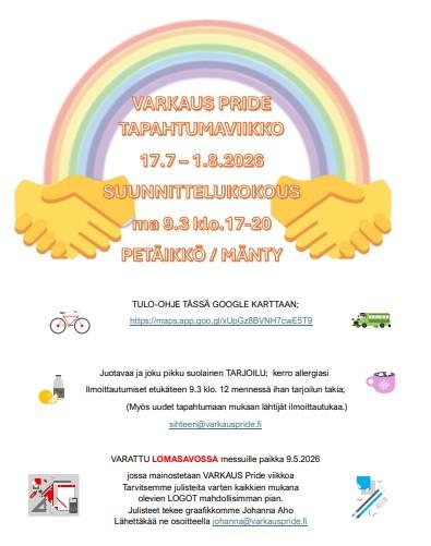 Vielä toivomme lisää väkeä, yhdistyksiä ja yhteisöjä, Varkaus Pride tapahtuman viikkoon.